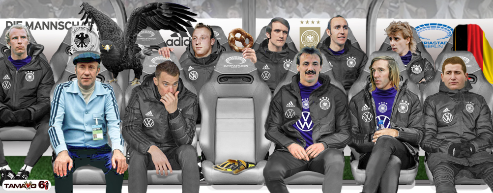 OLIVER KAHN (Guardameta), Karlheinz Helmut FÖRSTER, MATS HUMMELS, Karl-Heinz SCHNELLINGER, Ulrich «ULI» STIELIKE, STEFAN EFFENBERG, BASTIAN SCHWEINSTEIGER, Rainer BONHOF, HANS SCHÄFER, THOMAS Jürgen HÄßLER, MICHAEL BALLACK, Johann «HANS» SCHÄFER, THOMAS MÜLLER, Rudolf «RUDI» VÖLLER, JÜRGEN KLINSMANN, MIROSLAV Josef KLOSE…