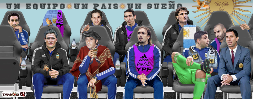 CÉSAR Luis MENOTTI (Técnico), AMADEO CARRIZO (Guardameta), WÁLTER Adrián SAMUEL, CARLOS Adolfo SOSA, ROBERTO Fabián AYALA, JUAN PABLO SORÍN, Diego Pablo «EL CHOLO» SIMEONE, ANTONIO SASTRE, JORGE Luis BURRUCHAGA, Juan Román RIQUELME, Juan Sebastián VERÓN, CLAUDIO Paul CANIGGIA, BERNABÉ FERREYRA, Enrique OMAR SÍVORI, MIGUEL Ángel BRINDISI, GUILLERMO Antonio STÁBILE, René Orlando HOUSEMAN, HERNÁN Jorge CRESPO, LAUTARO Javier Martínez…
