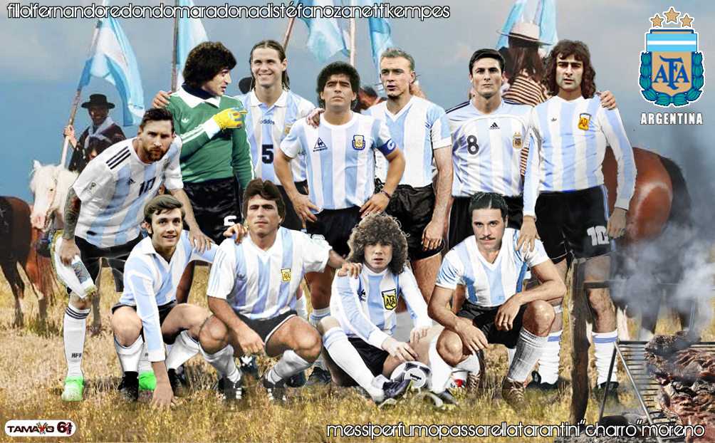 Conocida como la «Albiceleste», Selección pasional, de un país donde el futbol es religión. Mario A. Kempes, abrió la puerta de la gloria en el mundial del 78, para que después apareciera el que para algunos es el D10S del fútbol, Maradona, y para que posteriormente diera un portazo el otro D10S, Lionel Messi. Sin dejar a un lado a Alfredo Di Stéfano, uno de los mejores jugadores de todos los tiempos, que aunque no disfrutó de continuidad en la Selección por problemas sociopolíticos, fue un jugador de enorme trascendencia mundial. Además de 3 Copas del Mundo, la AFA, lidera la Copa América con 15 títulos, trono compartido con Uruguay.