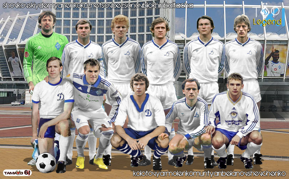 Футбольний клуб «Динамо» Київ. Bilo-Syni (Blanquiazules). Es el equipo más seguido y popular de Ucrania y junto al Spartak de Moscú, también de la antigua Unión Soviética. Su primer triunfo fue la Copa soviética de 1954 y en el 1961 su primera liga soviética. El club de Kiev conoció la fama internacional durante la era de Valeriy Lobanovskyi. El «héroe de Ucrania» estuvo 16 años al timón y cosechó más de 15 títulos. Los mayores éxitos fueron sin duda los dos triunfos en la Recopa de Europa (1975 y 1986) y en la Supercopa de Europa (1975). Tras el desmembramiento de la Unión Soviética, se fundó la nueva Liga Premier de Ucrania (1992/93), siendo el dominador junto al Shakhtar Donetsk.