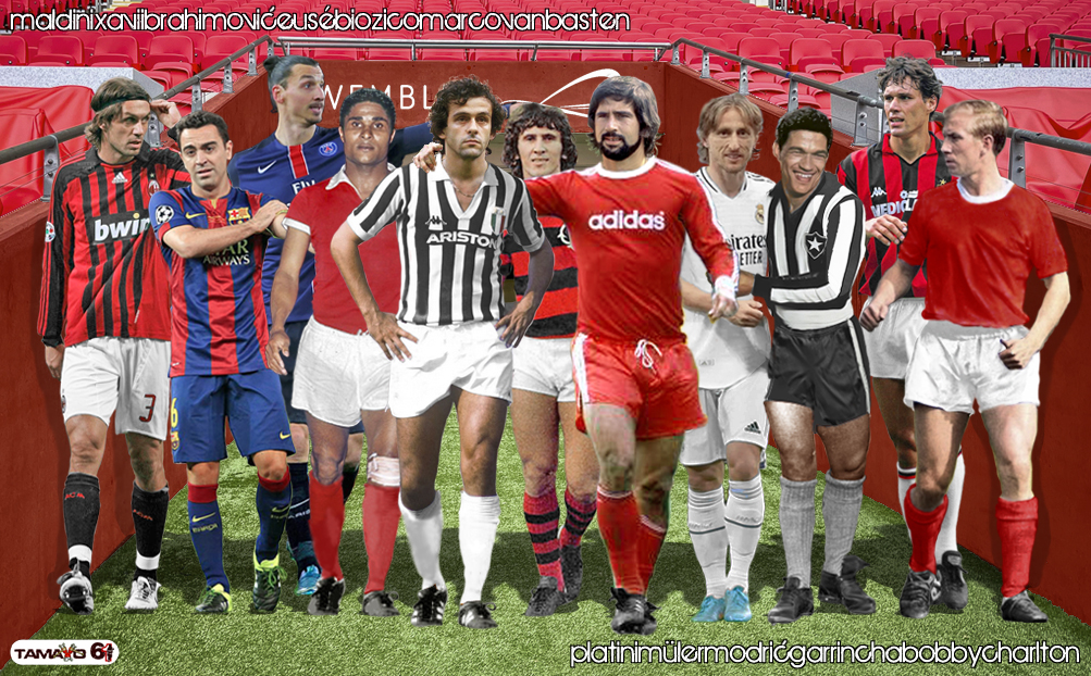 Jugadores igualmente emblemáticos. Un once, en el que hay muchos creadores de juego y asistentes, que no solo se encomendaban a la facturación del gol. En cuanto a representación de clubes, el gran Milan AC aparece aquí justamente representado por aportar a dos leyendas, uno en defensa y otro en ataque. Quizá se eche en falta entre los dos combinados algún representante del afamado club italiano FC Internazionale Milano y algún otro de los clubes ingleses como Liverpool FC, Arsenal FC y Chelsea FC, que gozaron de gran éxito nacional e internacional.