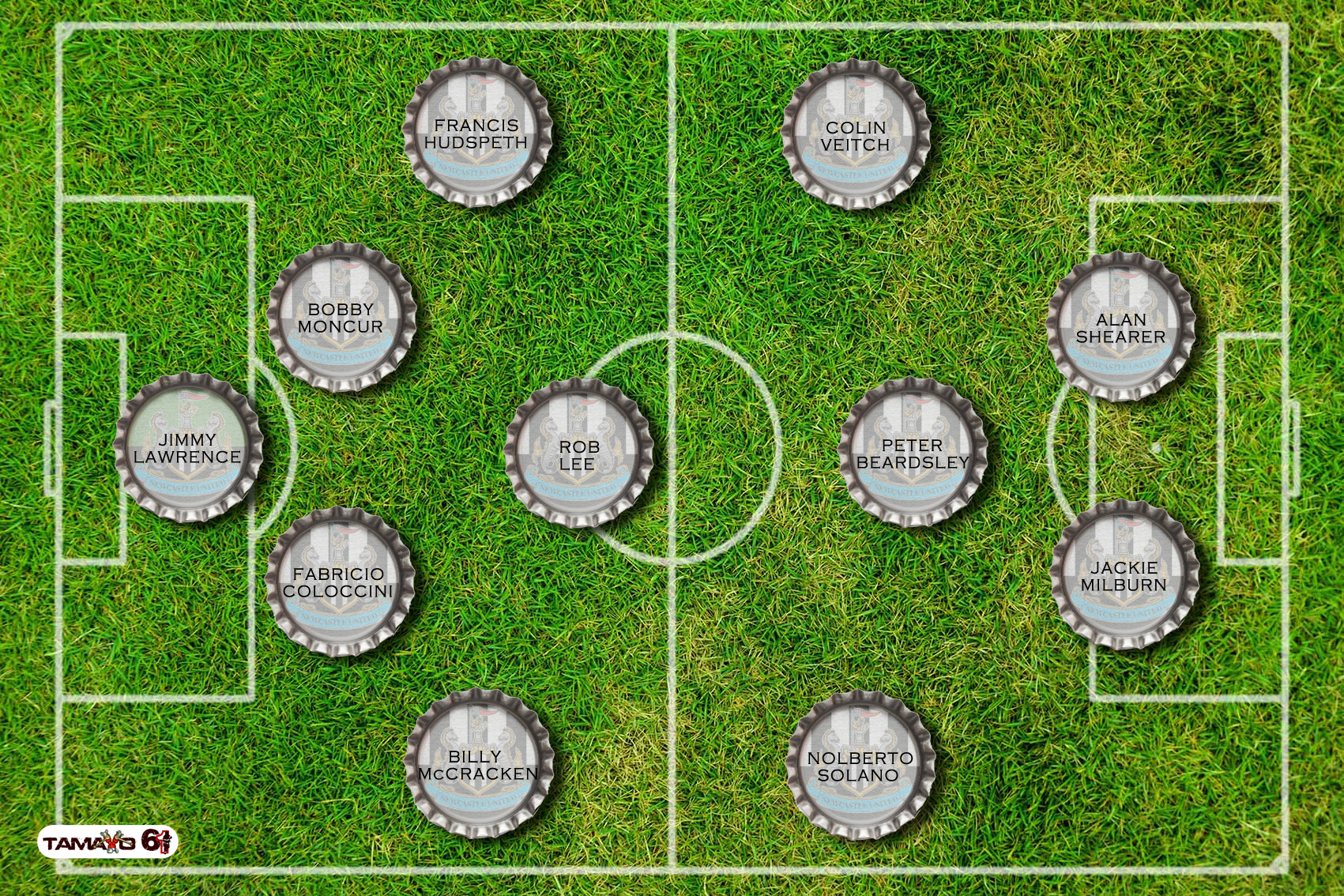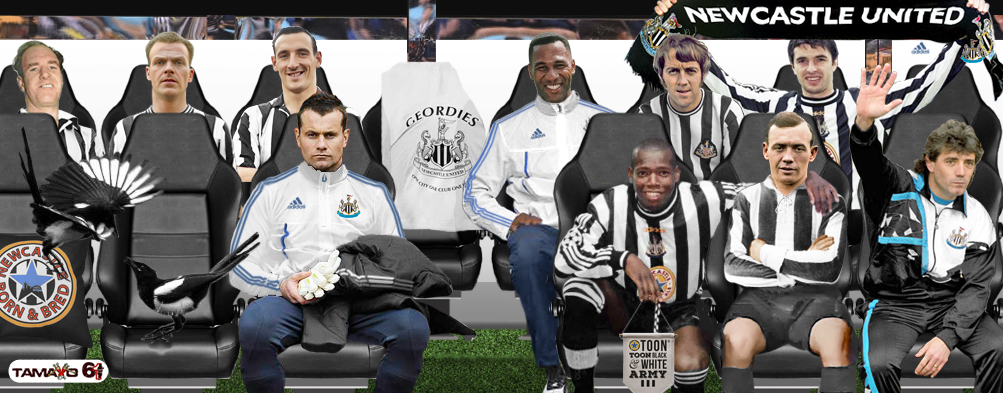 FRANK George WATT (Técnico), Robert «BOBBY» William ROBSON (Técnico), Ronald «RONNIE» Campbell SIMPSON (Guardameta), DAVID CRAIG, Alexander «ALEC» GARDNER, Joseph «JOE» HARVEY, James «JIMMY» HOWIE, PAUL John GASCOIGNE, Christopher «CHRIS» Roland WADDLE, DAVID GINOLA, John «JOCK» RUTHERFORD, JORGE ROBLEDO, ALBERT SHEPHERD, Joseph KEVIN KEEGAN, Andrew «ANDY» Alexander COLE, Leonard «LEN» Roy WHITE, Robert «BOBBY» Carmichael MITCHELL «DAZZLER»…