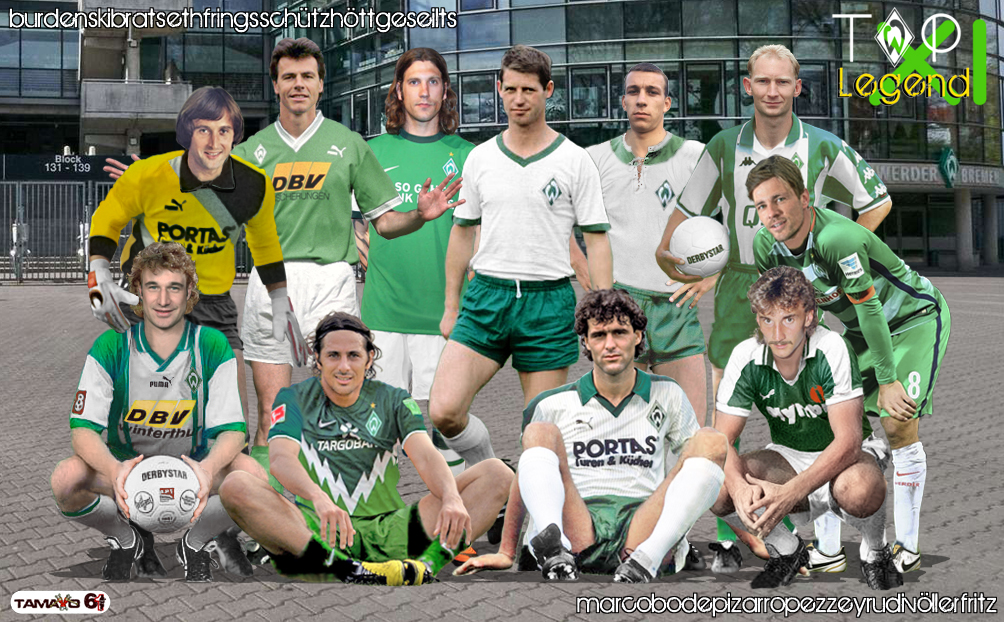 «Die Werderaner» (Los isleños del río), fundado por escolares de 16 años de círculos comerciales como FV Werder. Fue el primer club futbolístico que cobró entrada a los espectadores para poder asistir a los partidos. En el tiempo que pasó entre el fin de la guerra y la fundación de la Bundesliga en 1963 los verdi-blancos estaban reconocidos como el gran club del norte del país junto con el Hamburgo. En 1971-72 la ciudad de Bremen apostó por el Club con una fuerte inversión e incluso cambió efímeramente sus colores del verde al rojo, pero no dio sus frutos. Su época de éxitos llegó a principios de los 90 cuando culminó además con la Recopa de Europa.