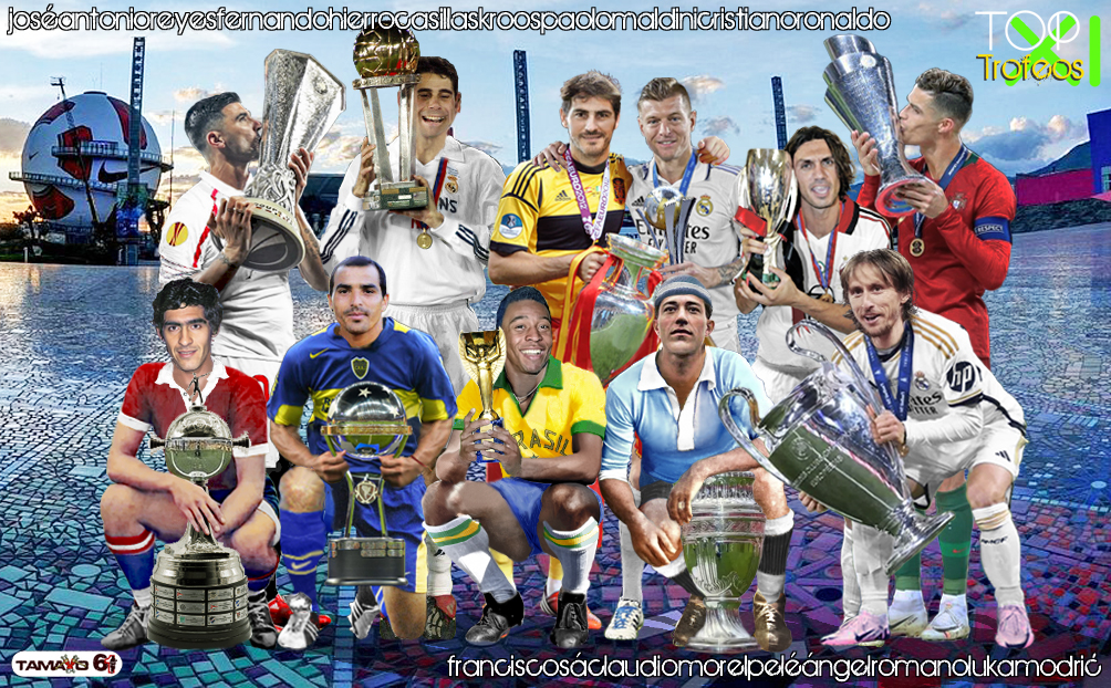 ARRIBA: José Antonio Reyes, Fernando Hierro, Casillas, Kroos, Paolo Maldini, Cristiano Ronaldo. ABAJO: Francisco Sá, Claudio Morel, Pelé, Ángel Romano, Modrić.