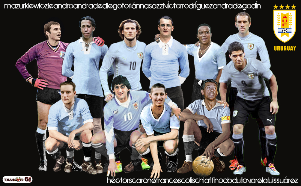La Selección «Charrúa», fue precursora del Fútbol en Sudamérica debido a los trabajadores británicos allí afincados. Con tan solo 3,5 millones de habitantes y una mínima extensión de territorio, es una de las Selecciones más laureadas de la historia. Sus inicios fueron demoledores, ganadores de las 2 primeras Copas de América 1916 y 1919, los 2 primeros JJ.OO 1924 y 1928 (considerados por muchos como 2 campeonatos mundiales) y la 1ª Copa del Mundo de 1930, siendo entonces la referencia mundial. En 1950, sin ser favoritos, consiguieron su 2ª Mundial en el famoso «Maracanazo», derrotando a la gran aclamada Brasil, en su propio feudo.